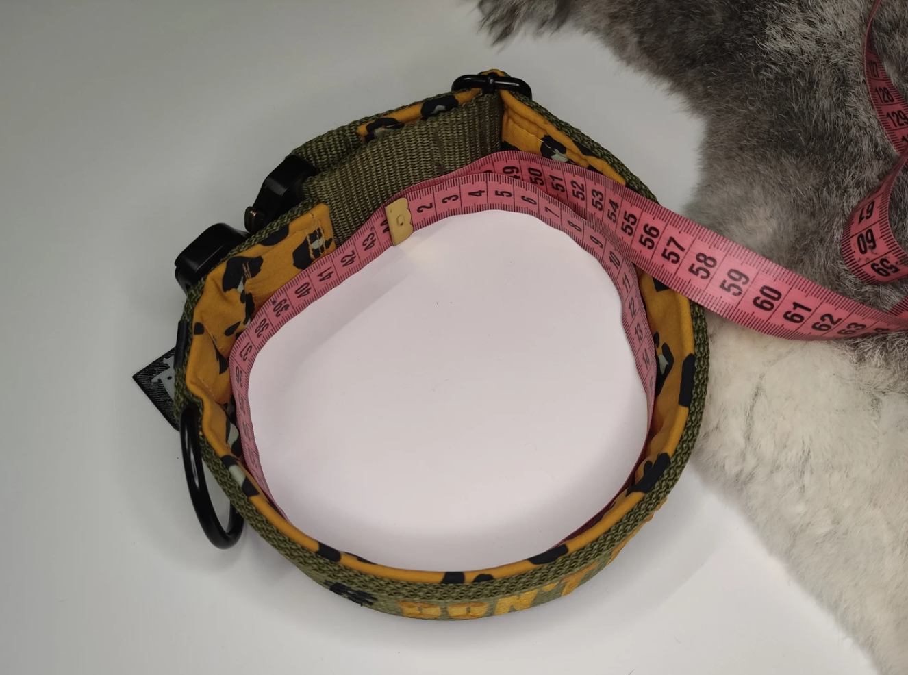 - Leg deinem Hund das Maßband so eng um den Hals, wie das Halsband später idealerweise sitzen soll.